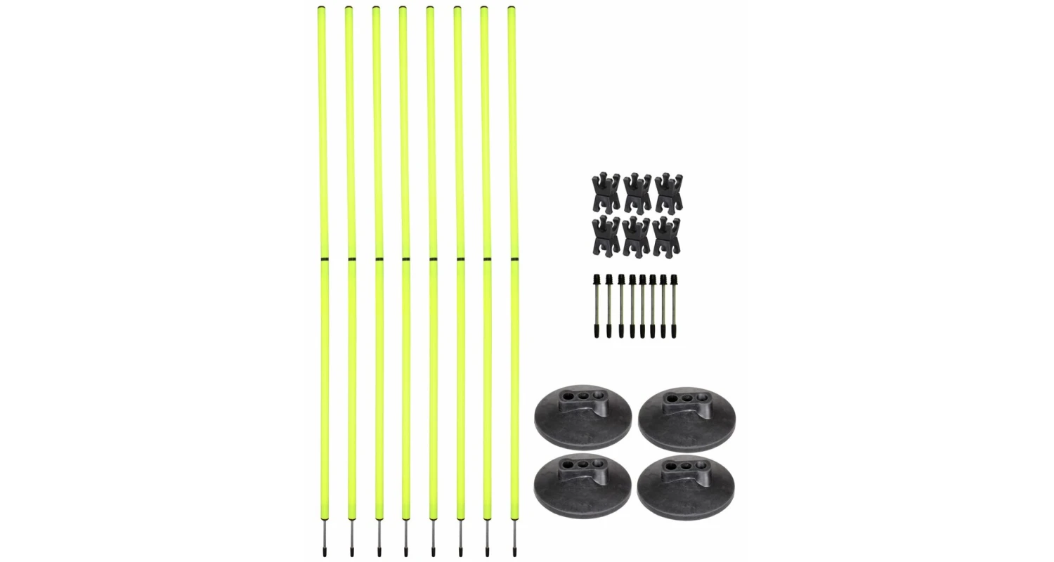 Das Agility Set ist ein perfektes multifunktionales Trainingsmittel welches nicht nur für Fußballvereine, sondern auch für Eishockey Schulen und andere Sportvereine passend ist. Sie ermöglichen in kürzester Zeit eine Slalomstrecke oder Hürden und machen somit das Training interessanter und effektiver. Sie können die Höhe der Stangen nach Belieben verstellen und den Schwierigkeitsgrad einstellen. Dank der zweiteiligen Stangen und der Tasche ist das ganze Set leicht zusammenklappbar und Sie können es jederzeit und überall zwischen den einzelnen Trainingseinheiten mitnehmen.