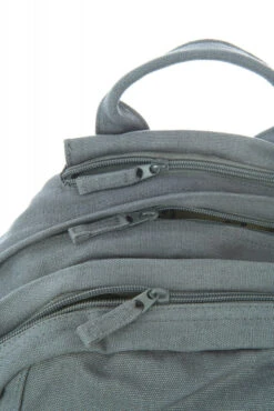 Der Reißverschluss des großen Hauptfachs lässt sich fast um die ganze Breite des Rucksacks öffnen, dadurch ist ein optimales Befüllen gewährleistet. Im zweiten RV-Fach befindet sich zusätzlich ein Innenfach mit separatem RV, sowie mehrere Fächer für Stifte etc. und einen Schlüsselhaken. Zudem gibt es ein Fach im Frontbereich und zwei seitliche Taschen zum Eingreifen.